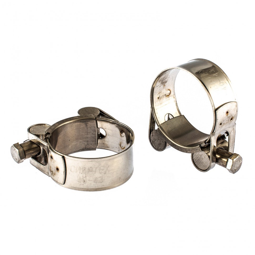 Хомуты металлические, силовые 40-43 мм, ширина 20 мм, шарнирный, W4, 2 шт Сибртех 475253
