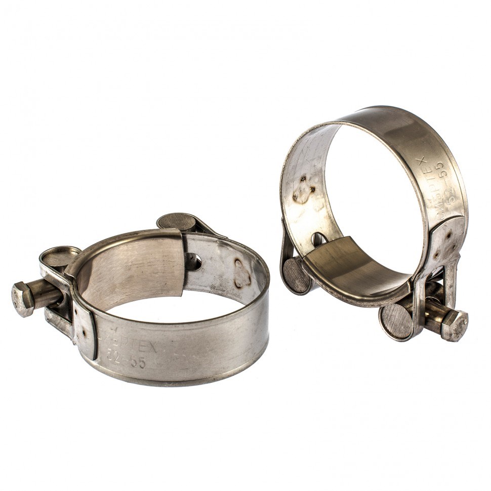 Хомуты металлические, силовые 52-55 мм, ширина 22 мм, шарнирный, W4, 2 шт Сибртех 475413