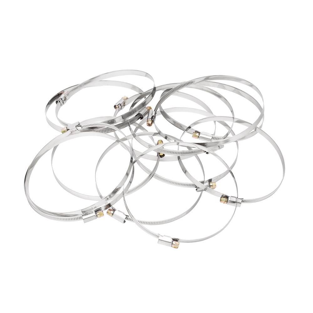 Хомуты изготовлены из прочной нержавеющей стали, что обеспечивает им долговечность и высокую устойчивость к коррозии. Они позволяют удобно фиксировать шланги и трубы, а их монтаж не требует специальных навыков. Эти хомуты можно многократно использовать, что делает их экономически выгодным решением.