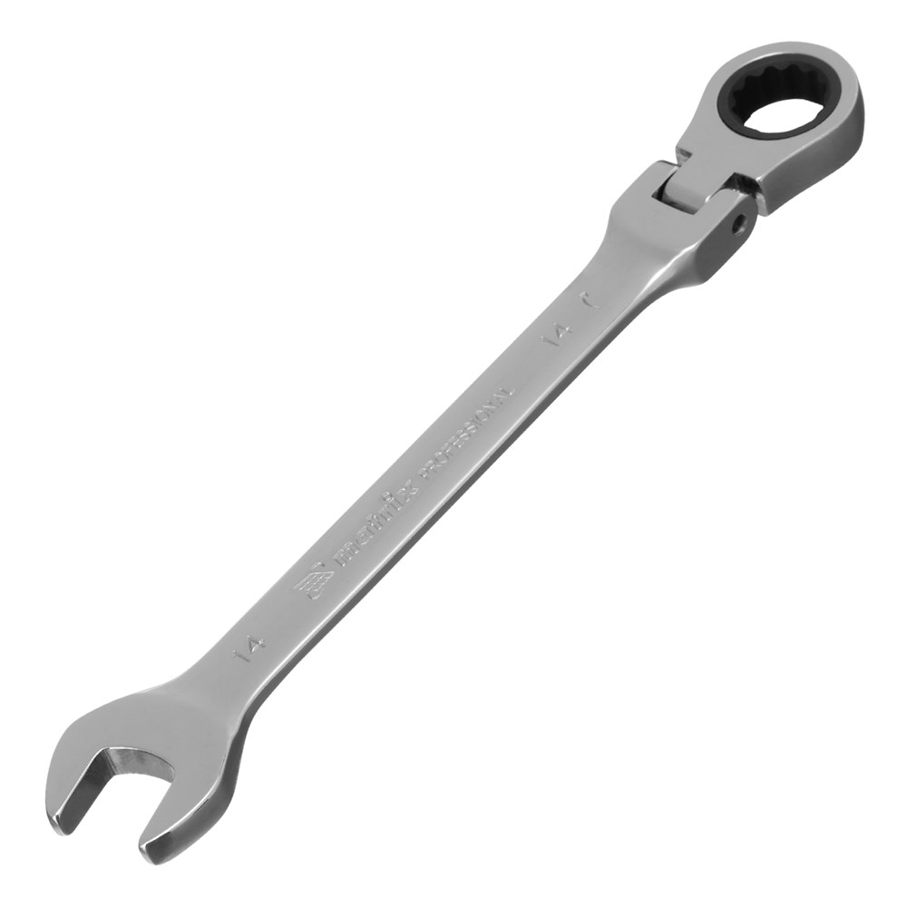 Ключ комбинированный трещоточный, 14 мм, CrV, шарнирный, зеркальный хром Matrix Professional