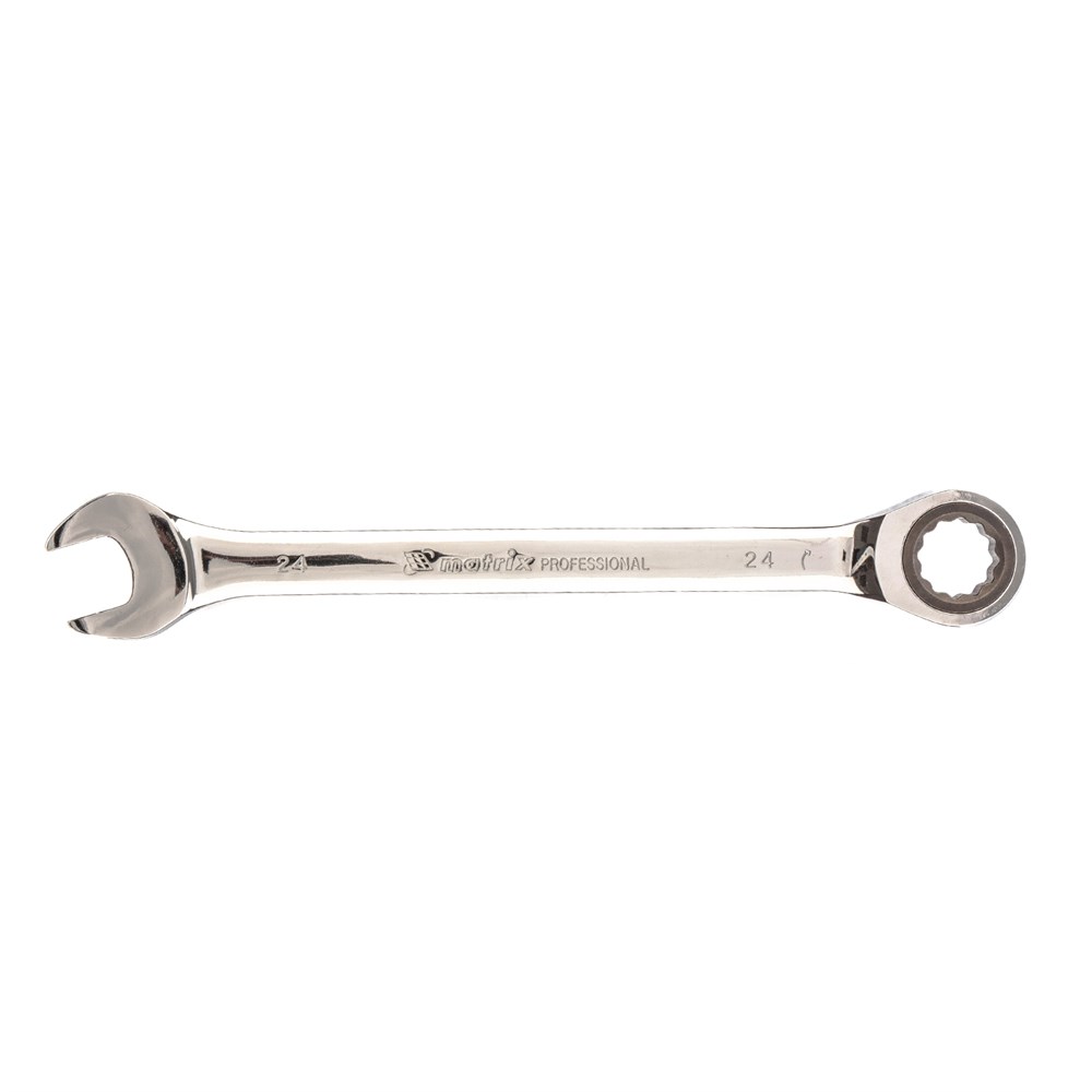 Ключ комбинированный трещоточный, 24 мм, CrV, зеркальный хром Matrix