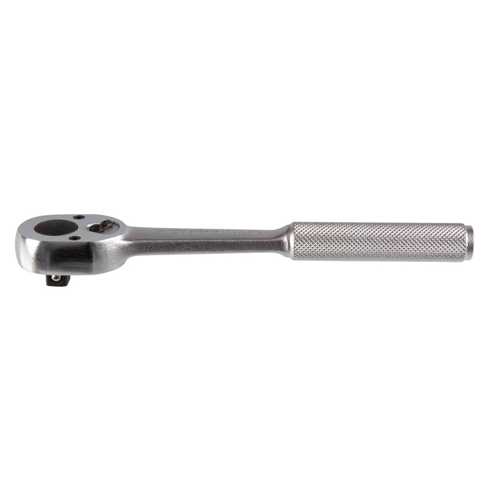 Назначение: Предназначена для работы совместно с торцевыми головками, которые присоединяются при помощи посадочного квадрата и удлинителями для монтажа и демонтажа крепежных узлов различных размеров. Область применения: На станциях технического обслуживания автомобилей (СТОА), в автосервисах и автомастерских. Особенности: • Трещоточный механизм ключа позволит работать им, не отрывая от закручиваемой детали. • Металлическая ручка с насечками. • 3 положения. • Имеет кнопку сброса. • Имеет флажок реверса. • Изделие отличается простотой и удобством в применении, поможет легко и быстро справиться с крепежными работами как в быту, так и в профессиональной сфере деятельности. Технические характеристики: Посадочный квадрат 3/8" Кол-во зубьев 32 Длина, мм 200 Вес, кг 0,352