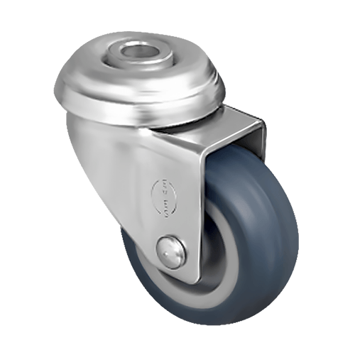 Колесо аппаратное EMES EP04 MKT 100 — поворотное аппаратное колесо с ободом, отлитым из полипропилена, и шинкой из термопластичной резины. Поворотный кронштейн изготовлен из оцинкованной стали. Тип крепления — под болт. В оси установлен надёжный подшипник скольжения, ступица может быть заклёпанной или с болтом и гайкой. В поворотном узле — двойной шарикоподшипник.