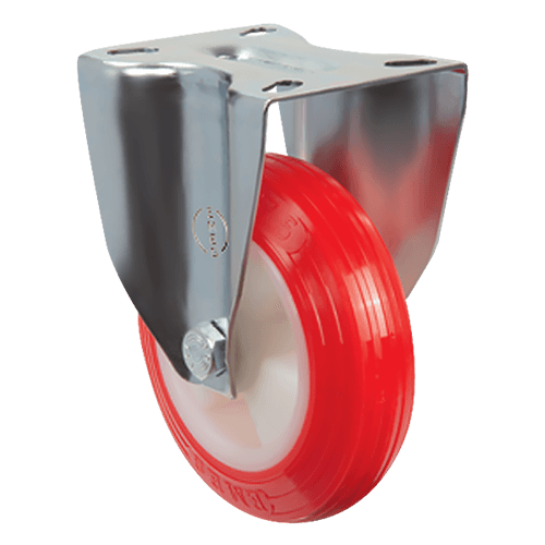 Колесо полиуретановое EMES EM02 ZKP 100 — неповоротное колесо, разработанное для устойчивого и надежного передвижения оборудования. Обод изготовлен из прочного полиамида, а шинка — из термопластичного полиуретана (95 Шор А), который обеспечивает высокую износостойкость и устойчивость к агрессивным химическим веществам. В оси установлен подшипник скольжения, гарантирующий стабильную работу под нагрузкой. Кронштейн выполнен из оцинкованной стали с платформенным типом крепления, что обеспечивает долговечность и удобство монтажа.