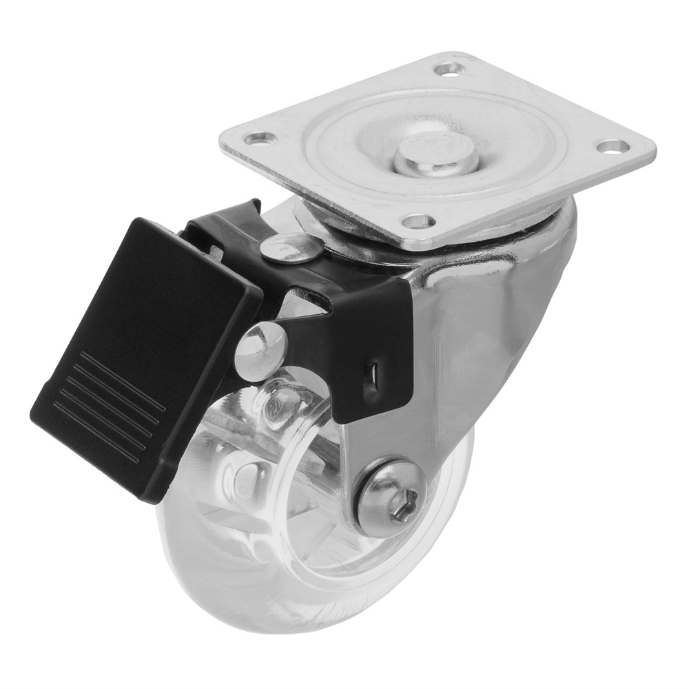 Колесо ПУ прозрачное поворотное с тормозом d-50 мм, крепление платформенное Сибртех 68737