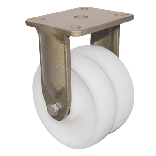 Колесо сдвоенное большегрузное EMES EJ02 HBZ 150-45 — это неповоротное сдвоенное колесо с высокой грузоподъёмностью. Обод отлит из высокопрочного полиамида, что обеспечивает устойчивость к износу и механическим повреждениям. В оси установлены надёжные шариковые подшипники для плавного качения. Кронштейн выполнен из прочной стали, конструкция неповоротная. Крепление осуществляется по платформенному типу с помощью болта и гайки.
