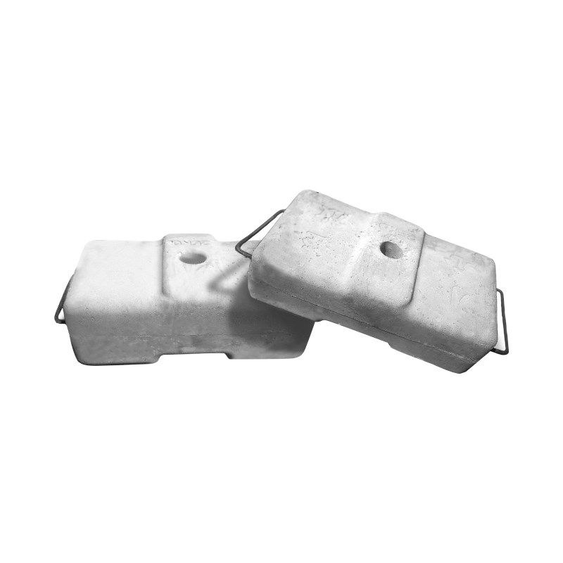 Контргруз к подъемнику фасадному SKYER BP-25 — бетонный противовес весом 25 кг для устойчивости консоли фасадного подъёмника. Через блок проходит стальной трос; углы скруглены для безопасности.