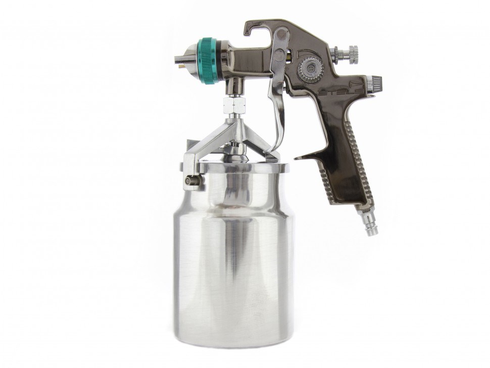 - Удобный обзор рабочей зоны: Алюминиевая емкость для краски объемом 1 л расположена снизу, что повышает видимость.