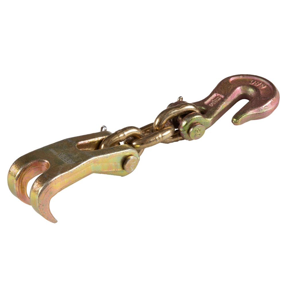Назначение Соединение рихтовочных цепей при проведении работ по исправлению геометрии кузова на стапельном оборудовании. Технические характеристики Тип – крюк одинарный / крюки сдвоенные Применяемые цепи – 10 мм Максимальная нагрузка – 3 тонн Класс прочности – G80 Материалы – инструментальная сталь, цинк Упаковка – картонный короб Размеры в упаковке – 131 × 92 × 58 мм Вес – 1,3 ммХарактеристики
