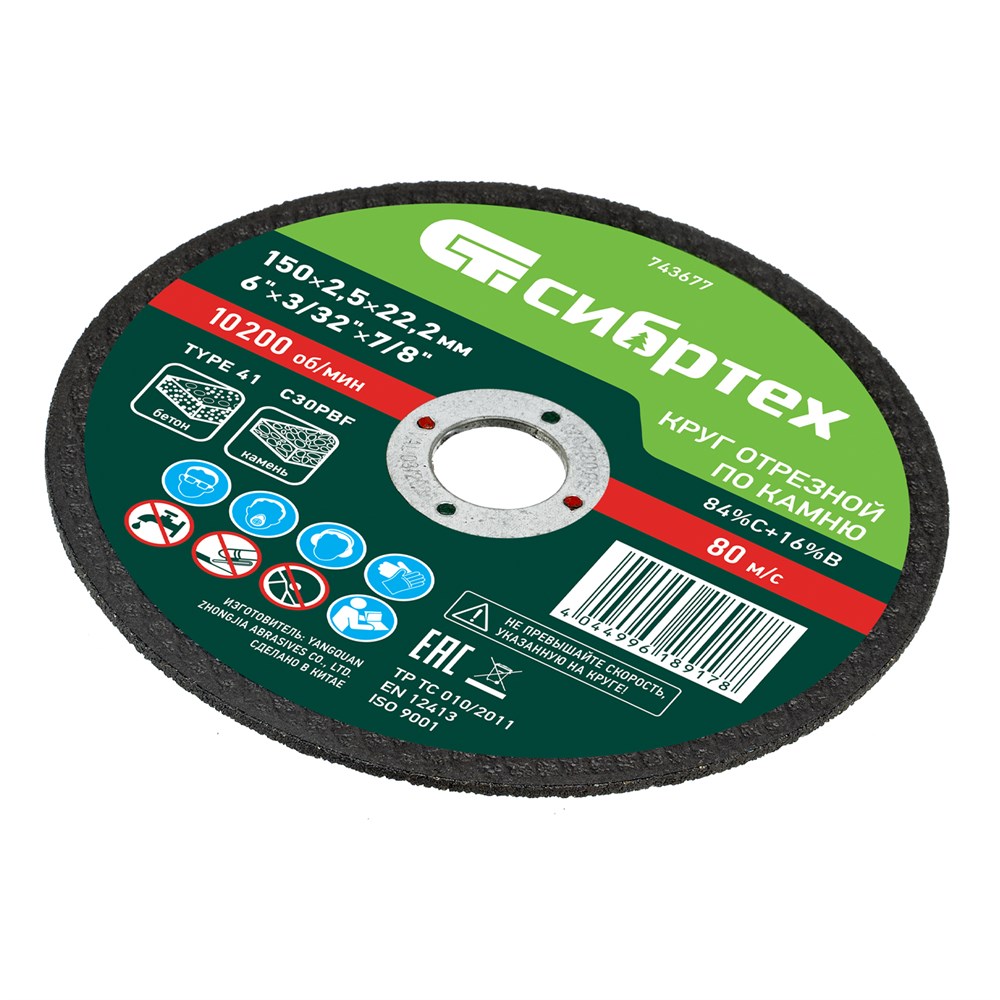 Круг отрезной по камню Сибртех 743677 размером 150 х 2,5 х 22,2 мм - это надежный инструмент, предназначенный для сухого реза различных материалов, таких как камень, огнеупорный кирпич, бетонные изделия и керамическая плитка. Он идеально подойдет как для домашнего использования, так и для работы в мастерской или на производстве.