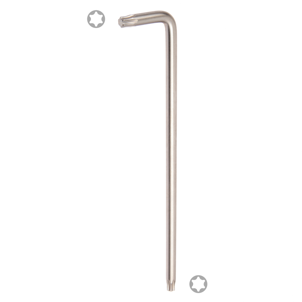 L-образный ключ King Tony Torx Т15, 145 мм 116315R предназначен для работы с резьбовым крепежом, имеющим на головке шлиц формата TORX. Используется при ремонте и техническом обслуживании автомобилей и другой техники, различного оборудования как профессионалами, так и частными мастерами. Ключ выполнен в L-образной форме с рукояткой эргономичной формы, изготовленной из пластика, что обеспечивает удобство при работе. Инструмент оснащен двумя стержнями из легированной стали с добавлением молибдена (SNCM-V) и с финишным хромированием поверхности. Основной стержень имеет рабочий размер профиля T, а второй – ТH (Торкс с отверстием, для работы с крепежом, у которого есть дополнительный штырек). Ключ отличается повышенной прочностью и надежностью.