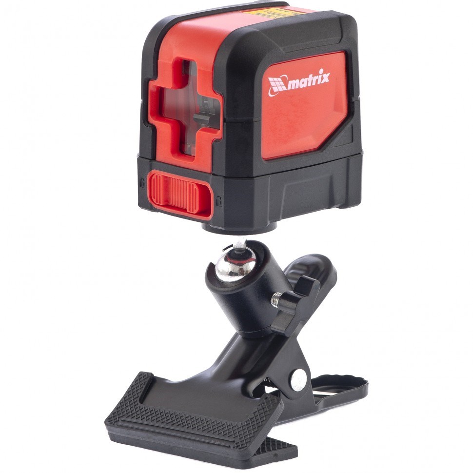 Лазерный уровень Matrix ML02 35059 проецирует на плоскость одну горизонтальную и перпендикулярную ей вертикальную линии.