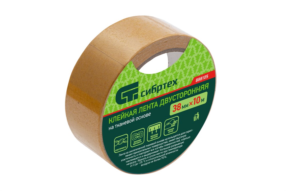 Лента клейкая двусторонняя, 38 мм х 10 м, на тканевой основе Сибртех 888105