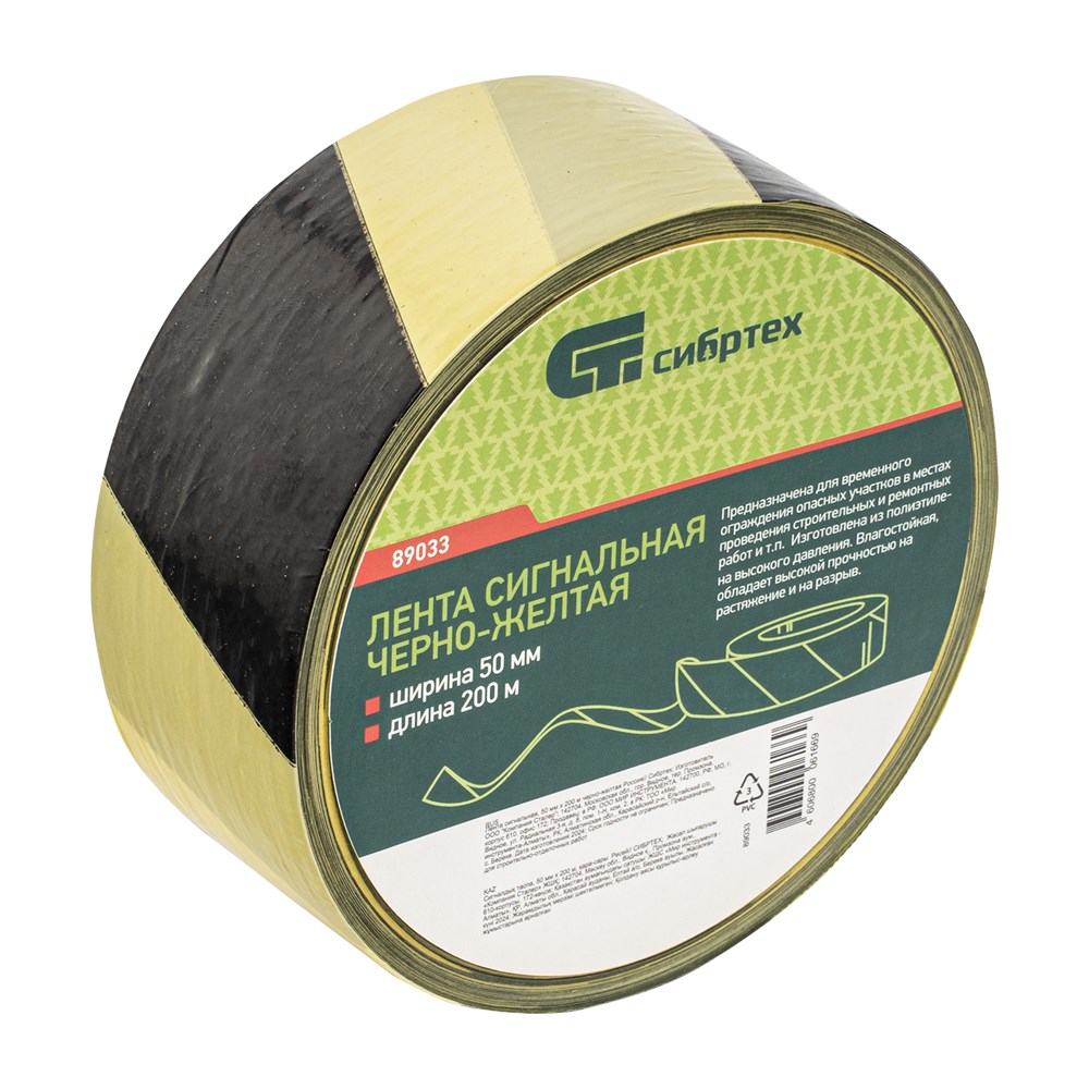 Лента сигнальная, 50 мм х 200 м, черно-желтая Сибртех 89033