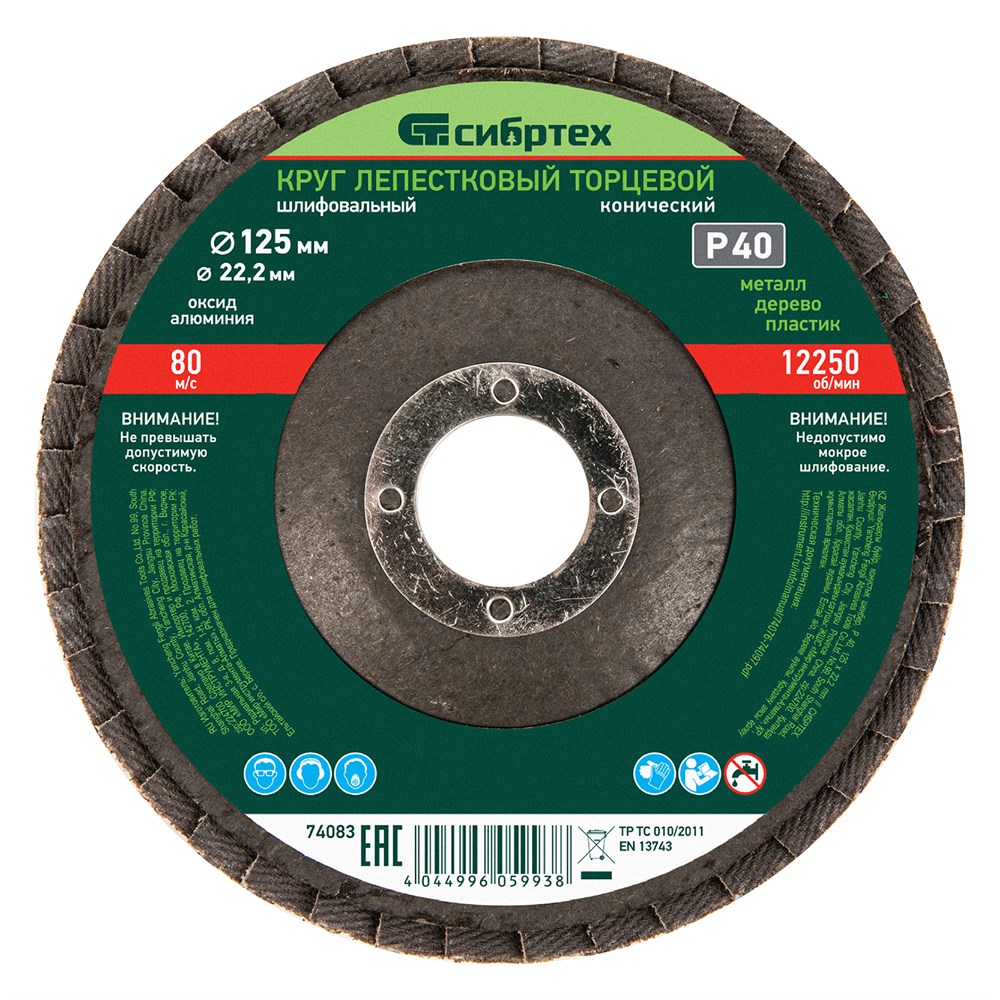 Круг лепестковый торцевой, конический, Р 40, 125 х 22.2 мм Сибртех 74083