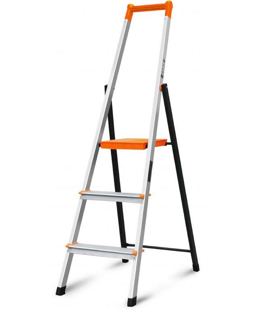 - Удобный поручень с лотком для инструмента и крепежа — позволяет держать всё необходимое (отвёртки, гвозди, шурупы) в пределах досягаемости, повышая производительность и безопасность.
