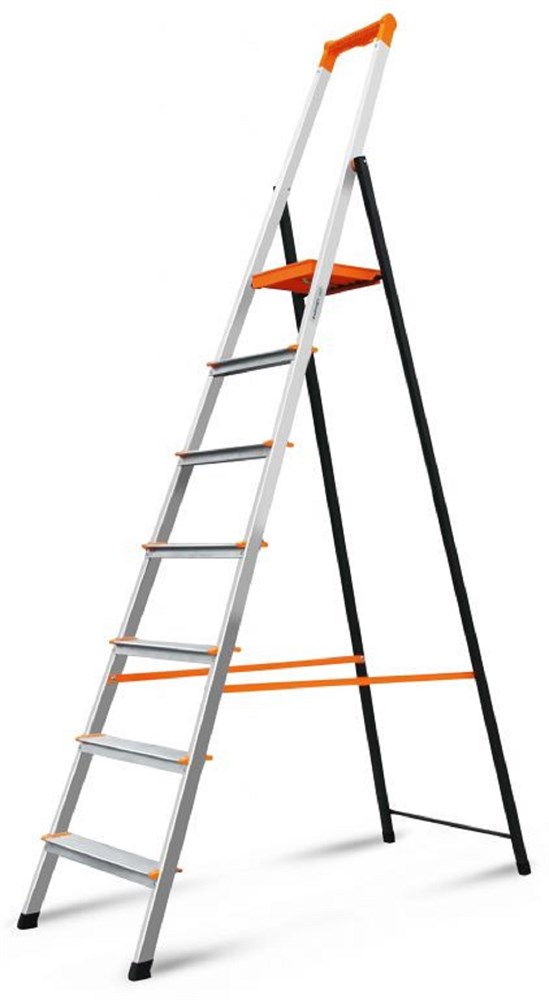 - Удобный поручень с лотком для инструмента и крепежа — позволяет держать всё необходимое (отвёртки, гвозди, шурупы) в пределах досягаемости, повышая производительность и безопасность.