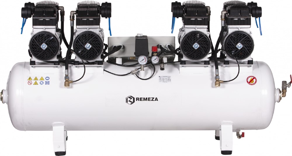 Медицинский компрессор Remeza СБ4-150.OLD20x4C 3046340 – это высокоэффективная модель с четырьмя рабочими насосами от белорусского производителя ЗАО "Ремеза", предназначенная для надежного пневмообеспечения стоматологических кабинетов, лабораторий и медицинских учреждений. Она обеспечивает 100% безмасляный сжатый воздух высокого качества, отличаясь компактностью, сверхнизким шумом, энергосбережением и полной автоматизацией без необходимости дополнительных настроек. Конструкция с четырьмя насосами на одном ресивере гарантирует стабильное давление и повышенную производительность для требовательных медицинских приложений.