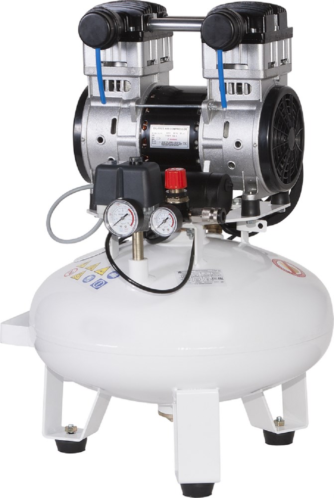 - Безмасляная конструкция гарантирует чистый воздух без масляных примесей, идеально подходящий для медицинских и стоматологических процедур, где стерильность критически важна;