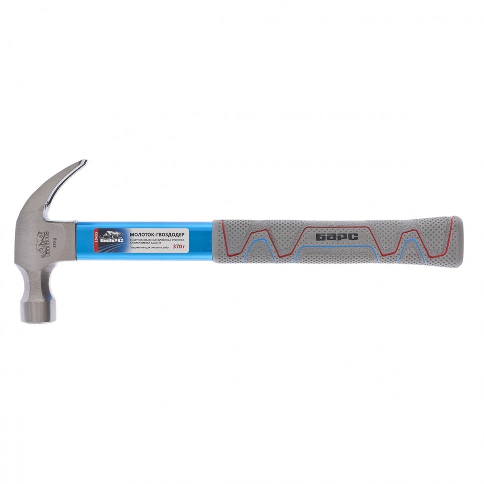 Молоток-гвоздодер 370 г, фибергласовая обрезиненная рукоятка, алюминиевая защита Барс 10455