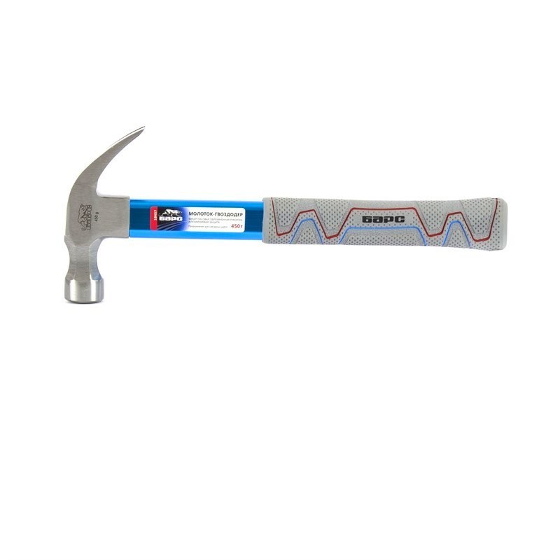 Молоток-гвоздодер 450 г, фибергласовая обрезиненная рукоятка, алюминиевая защита Барс 10457