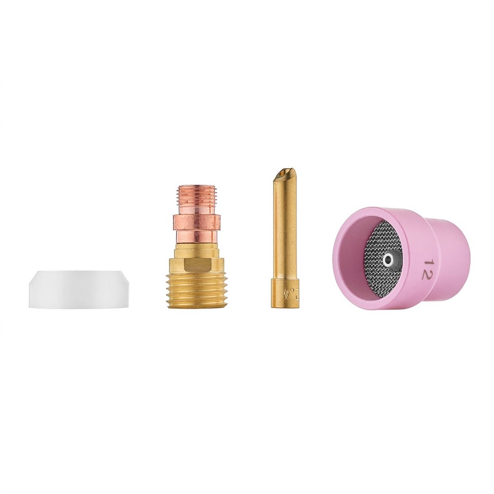 Набор COLISEUM №12 идеально подходит для использования с аргонодуговыми горелками TIG серии 17, 18 и 26. Он предназначен для работы с вольфрамом диаметром 1,6 мм, что делает его отличным выбором для сварочных работ, требующих высококачественного сварного шва.
