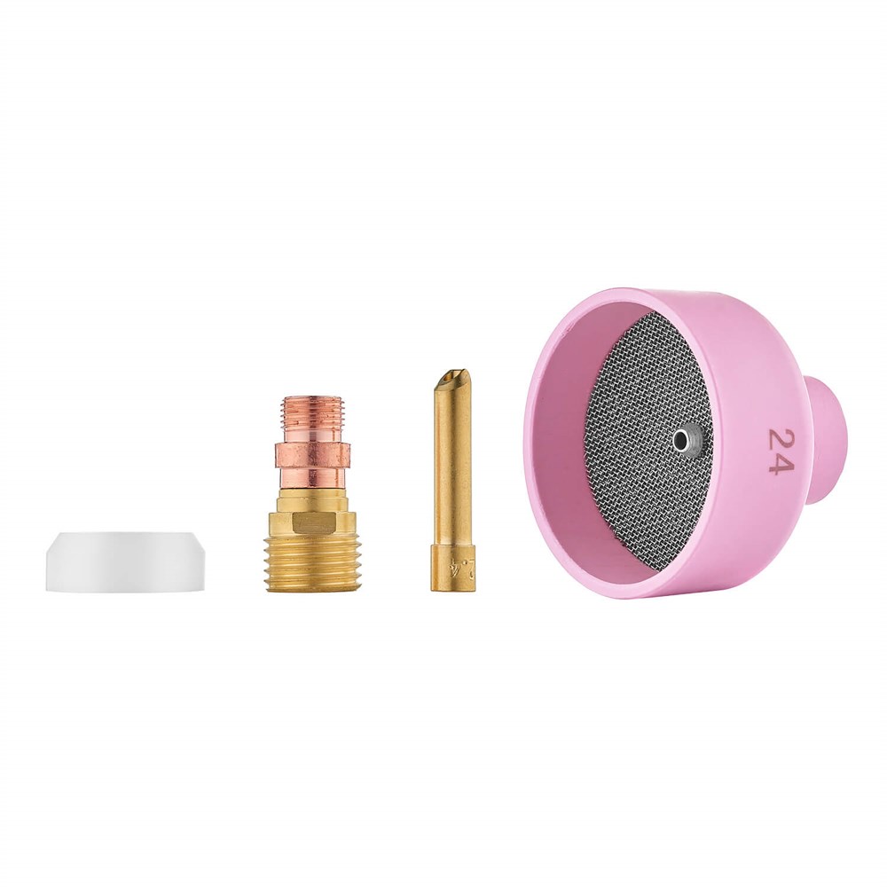 Набор COLISEUM №24 предназначен для работы с аргонодуговыми горелками TIG серии 17, 18 и 26, обеспечивая высокое качество сварных швов. В комплект входит вольфрамовый электрод диаметром 2,4 мм, что делает его идеальным выбором для профессиональных сварщиков.