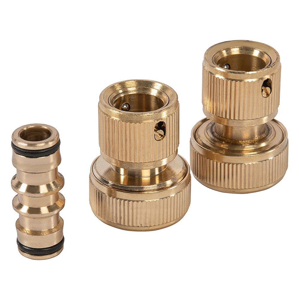 Набор для соединения шлангов 3/4, переходник, 2 соединителя, аквастоп, латунный Palisad 66211