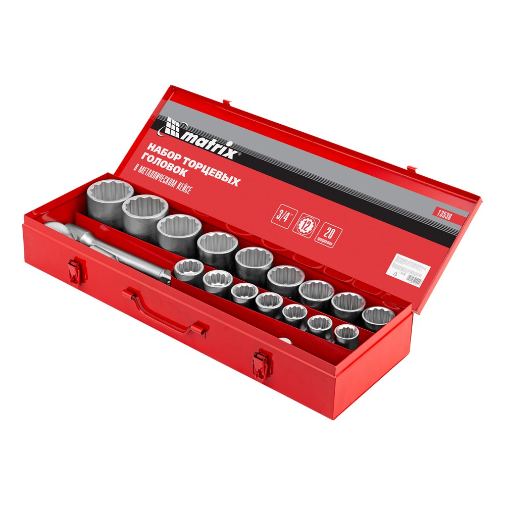Набор торцевых головок 3/4", головки 19 х 50 мм, 20 предметов, в метал. боксе Matrix 13536