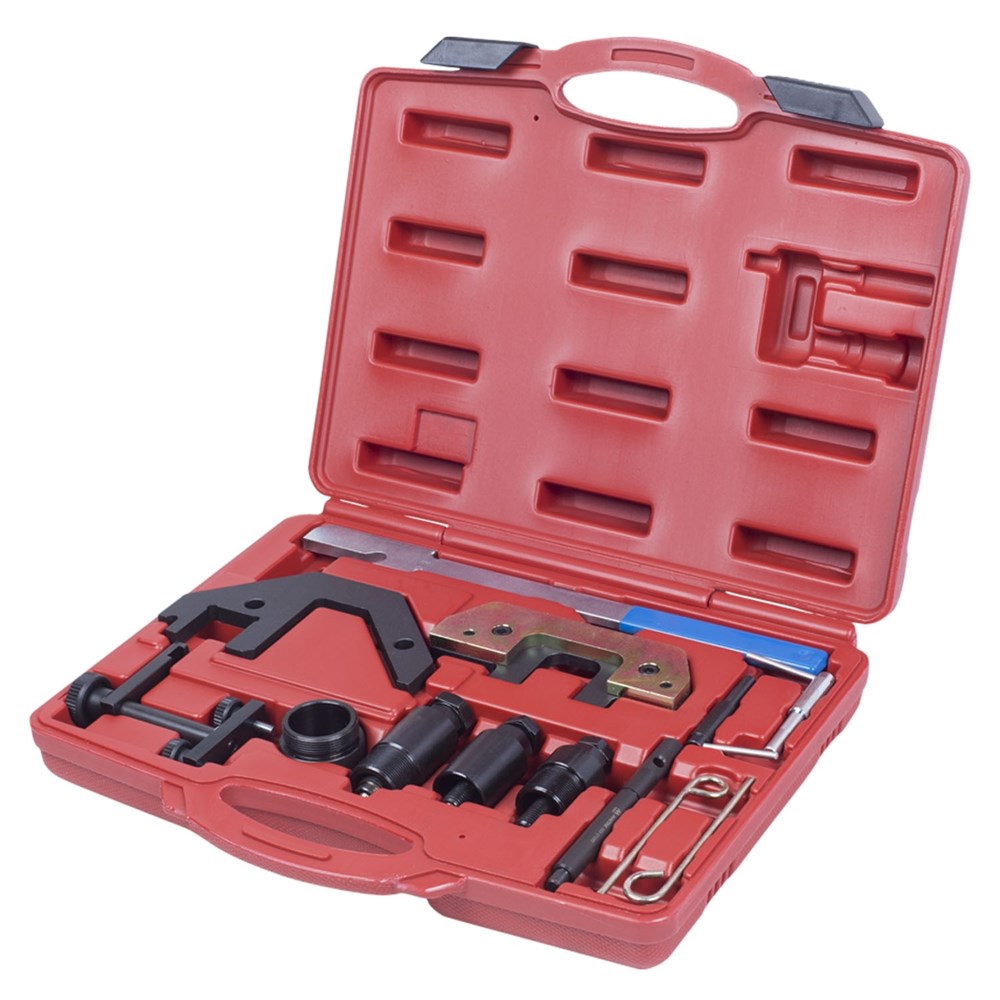 Применяется для двигателей: BMW: M41, M51, M47 TU/T2, M57 TU/T2 объемом 2.0L/3.0L начиная с 1998 года. Применение по маркам: BMW: 4-х и 6-ти цилиндровые двигатели 2.0D 16V, 1.8, 2.0, 2.5, 3.0D BMW 2.5 TD, TDS Land Rover 2.5 D Turbo Opel 2.5 D Turbo BMW 1.7, 4-цилиндровые рядные турбо дизельные двигатели Комплектация: • Два штифта фиксатора для плунжера натяжителя. OEM номер: 11 3 300 • Установочный комплект для дизеля. OEM номер: 11 6 320. Состоит из: а) Установочный шаблон для фиксации распредвала выпускных клапанов. OEM номер: 11 6 321 б) Держатель установочного шаблона. OEM номер: 11 6 322 • Фиксатор коленчатого вала. OEM номер: 11 5 180 • Фиксатор коленвала. OEM номер: 11 2 300 • Приспособление для отвода натяжного ролика. OEM номер: 11 3 360 • Фиксатор распределительного вала в ВМТ. Подходит для двигателейM51. OEM номер: 11 3 320 • Съемник шестерни ТНВД. Подходит для двигателей: M41, M51. OEM номер: 13 5 120 • Съемник шестерни ТНВД. Подходит для двигателей: M47, M57. OEM номер: 13 5 190