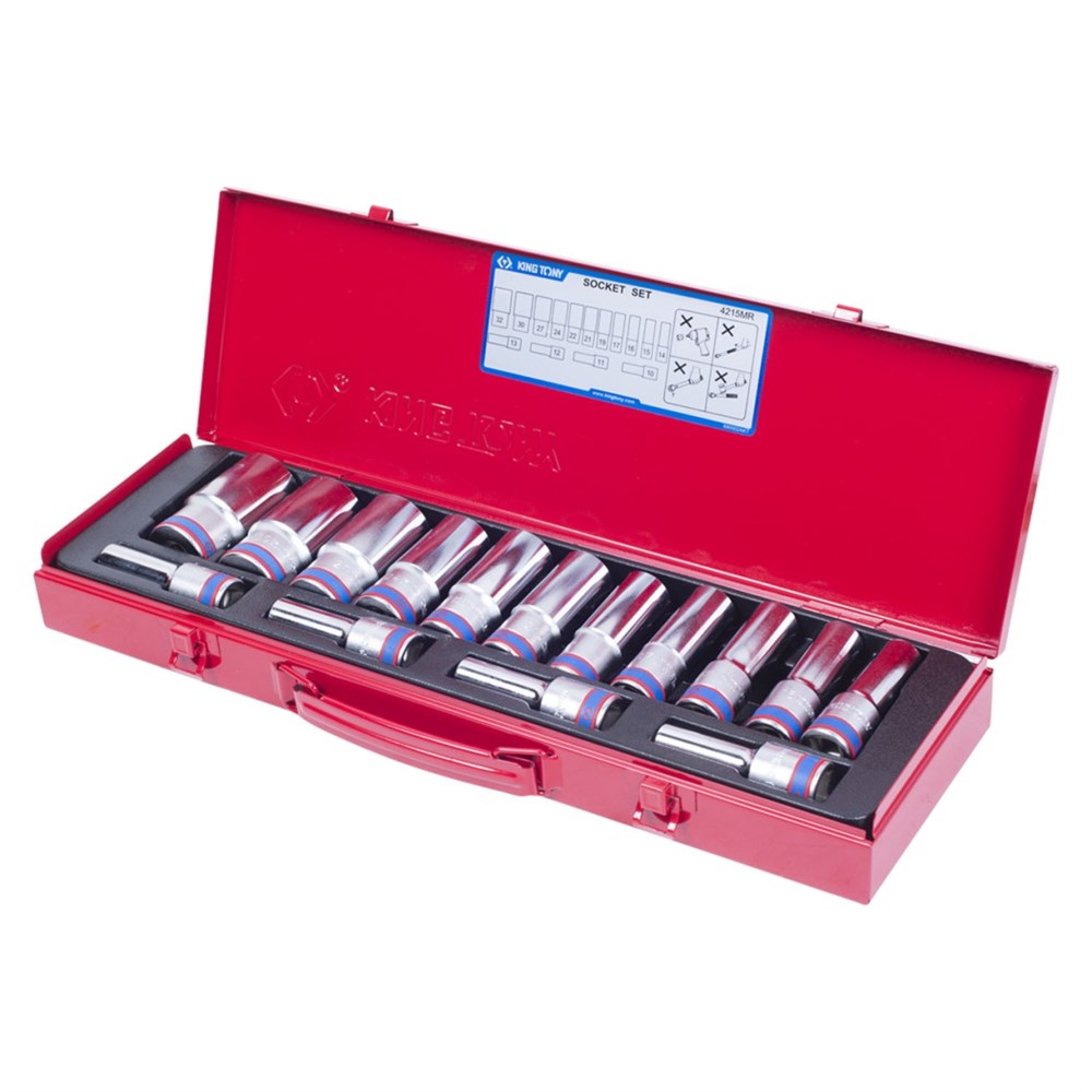 Набор глубоких торцевых головок 1/2", двенадцатигранные, 10-32 мм, 15 предметов KING TONY 4215MR TONY