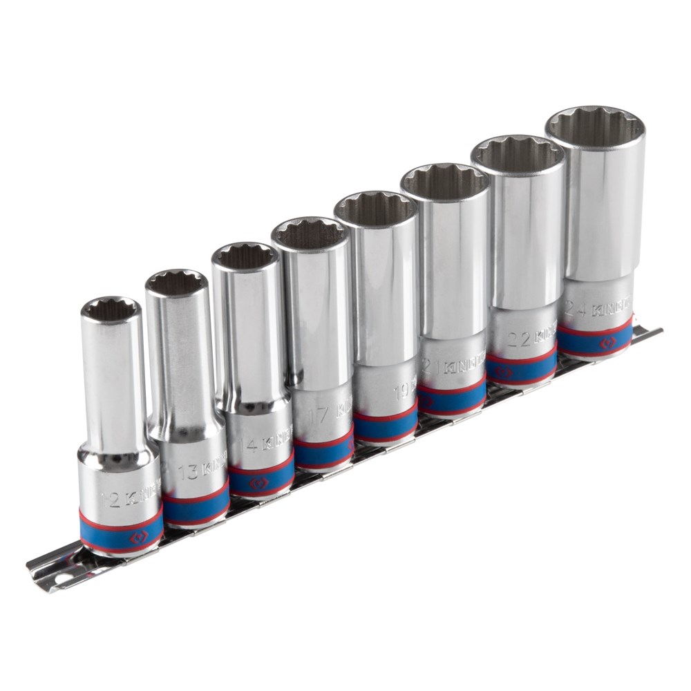 Набор глубоких торцевых головок 1/2", двенадцатигранные, 12-24 мм, 8 предметов KING TONY 4208MR11 Tony