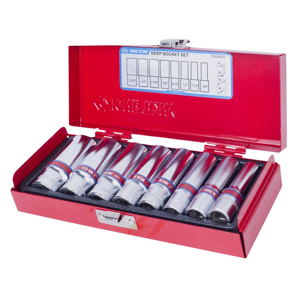 Набор глубоких торцевых головок 3/8", шестигранные, 3/8"-13/16", 8 предметов KING TONY 3508SR TONY