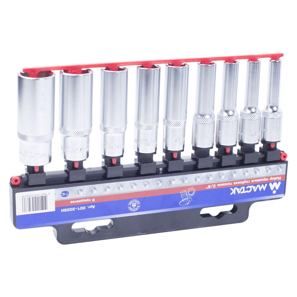 Набор торцевых глубоких головок 3/8", 6-19 мм, 9 предметов МАСТАК 001-3009H 001-3009H