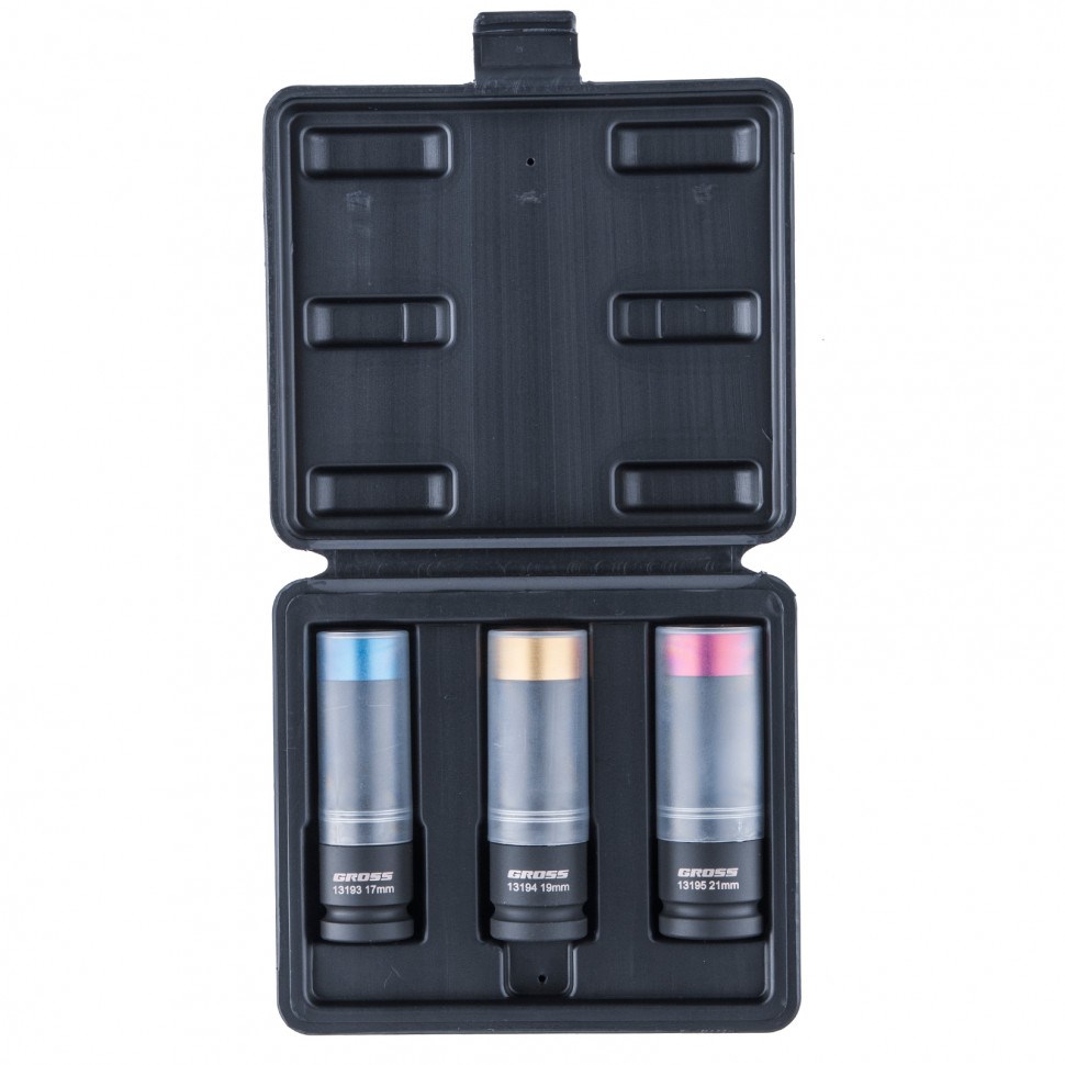 Набор головок ударных шестигранных для колесных дисков 17, 19, 21 мм, 1/2", 3 предмета Gross
