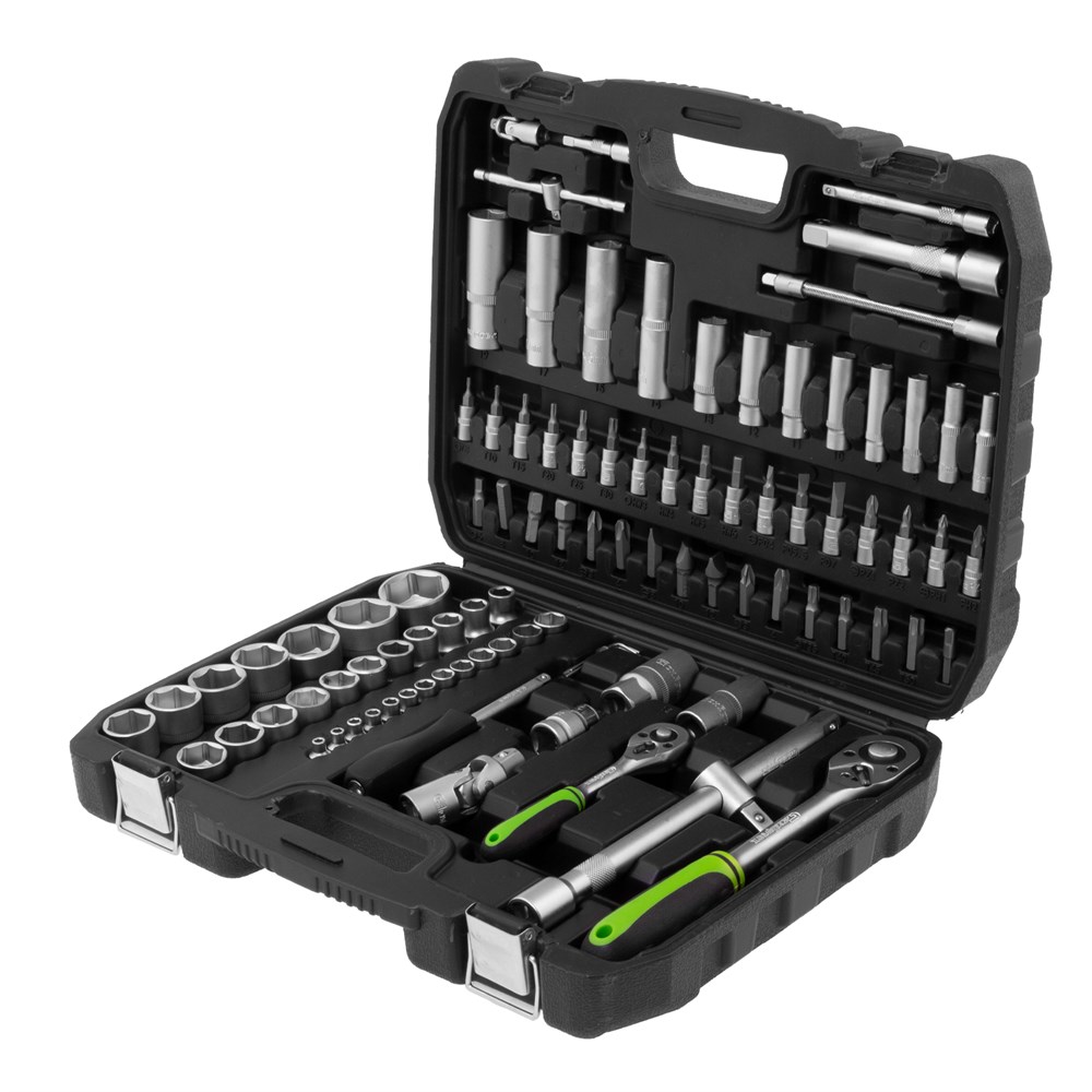 Набор инструмента Сибртех 13499 — это универсальный комплект, состоящий из 94 предметов с присоединительными размерами 1/2" и 1/4". Он упакован в прочный пластиковый кейс и станет отличным помощником как для автолюбителей, так и для профессиональных мастеров.