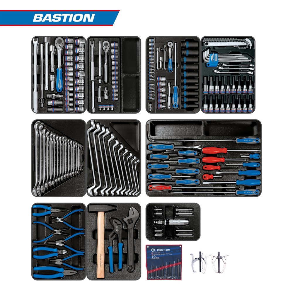 Набор инструментов "BASTION" для тележки, 10 ложементов, 204 предмета KING TONY 946-100MRD-MT TONY