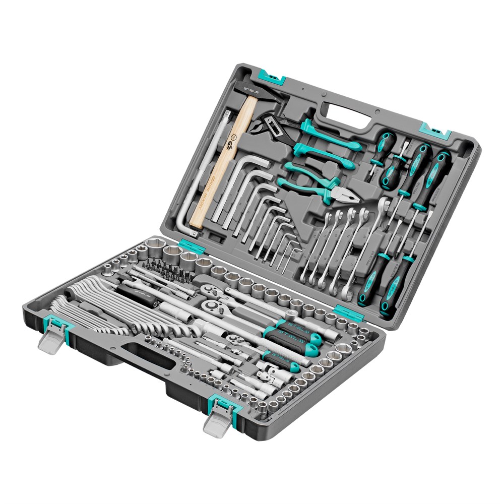 Набор инструментов, 1/2",3/8", 1/4", CrV, пластиковый кейс 142 предмета Stels 14107