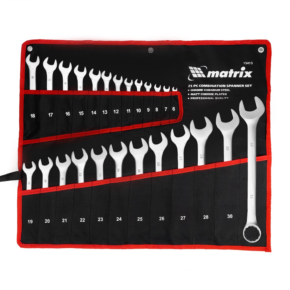 Набор ключей комбинированных, 6-32 мм, 25 шт, CrV, матовый хром Matrix 15413