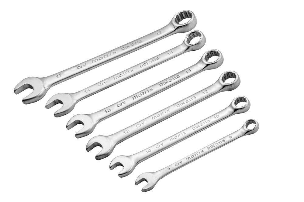 Набор ключей комбинированных, 8-17 мм, 6 шт, CrV, матовый хром Matrix