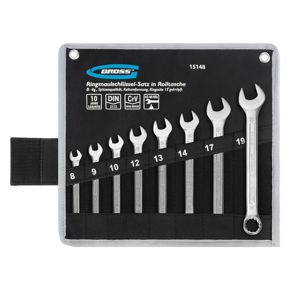 Набор ключей комбинированных 8-19 мм, 8 шт, CrV, холодный штамп Gross 15148