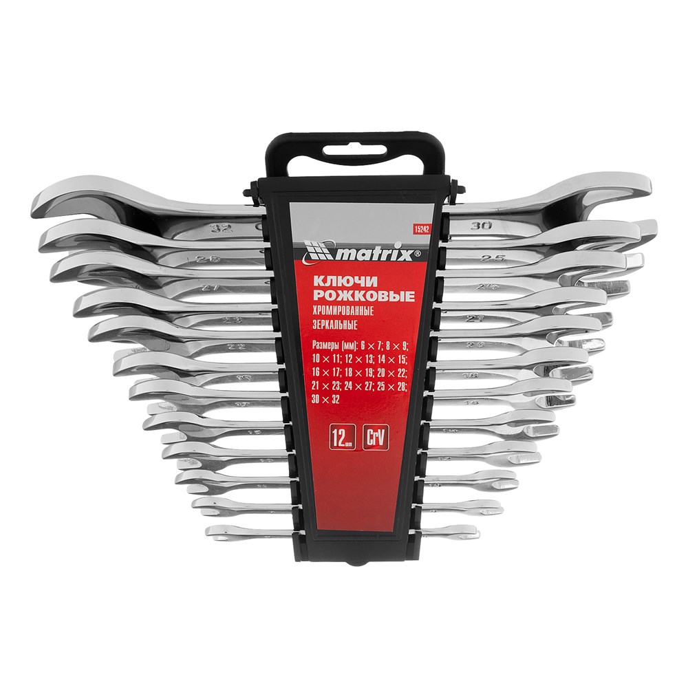 Набор ключей рожковых 12 шт (6-32мм) CrV, EllipticaL зеркальное хромирование Matrix