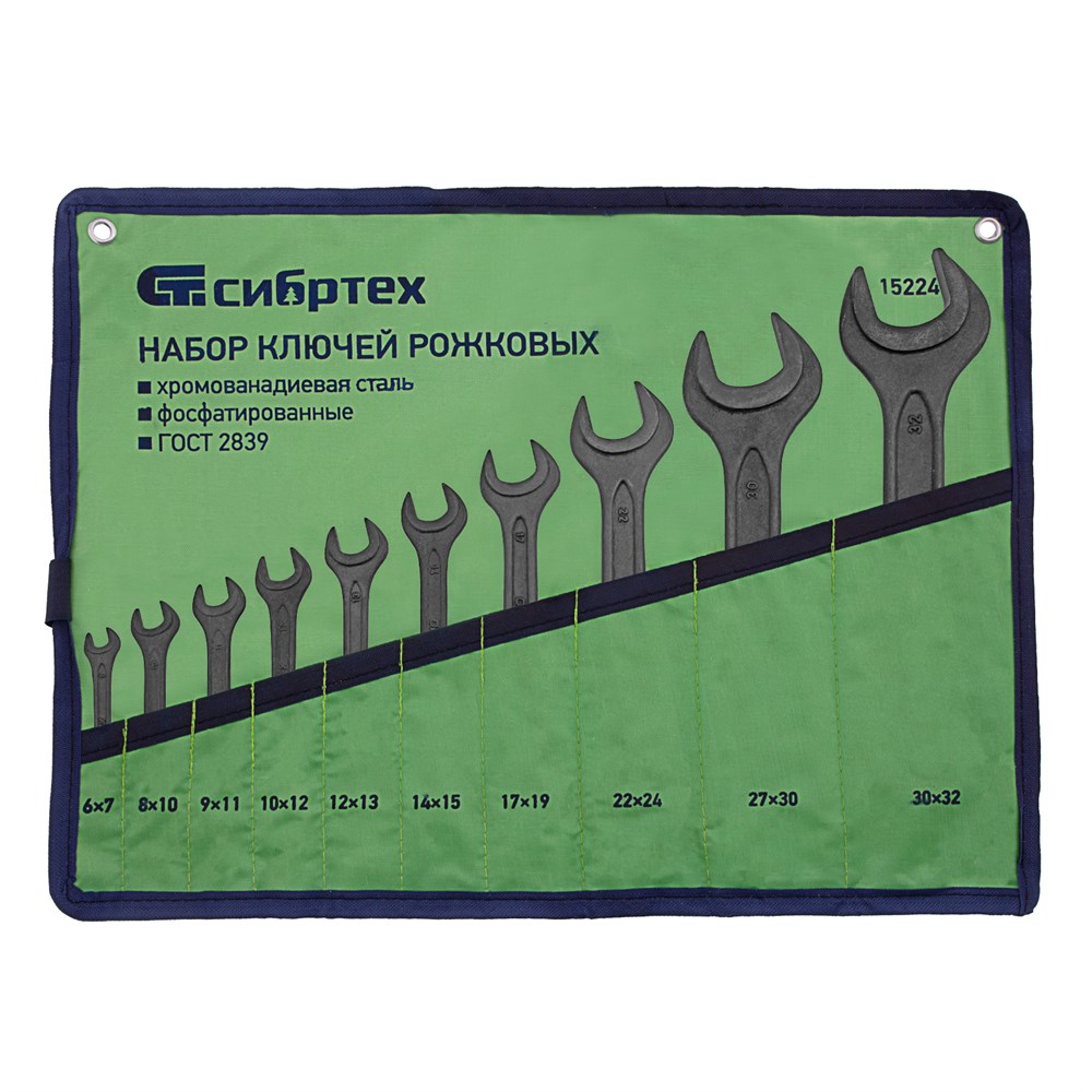 Набор ключей рожковых, 6 - 32 мм, 10 шт., CrV, фосфатированные Сибртех 15224