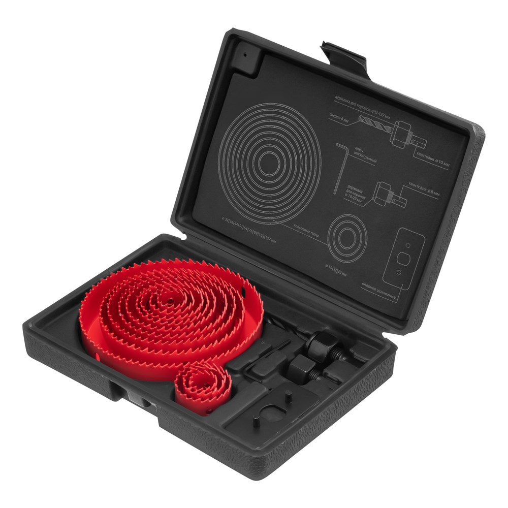 Представляем набор кольцевых пил Matrix 70472 — идеальное решение для работы по дереву, включая 12 предметов с коронками диаметром от 19 до 127 мм. Этот набор предназначен для выпиливания круглых отверстий в различных материалах, таких как фанера, гипсокартон, ДСП, ДВП и ламинат.