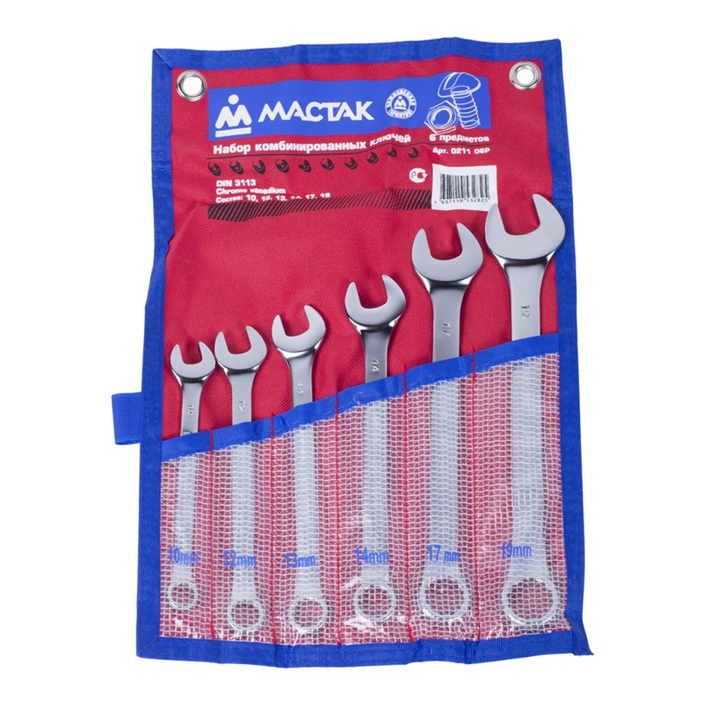 Набор комбинированных ключей, 10-19 мм, 6 предметов МАСТАК 0211-06P 0211-06P
