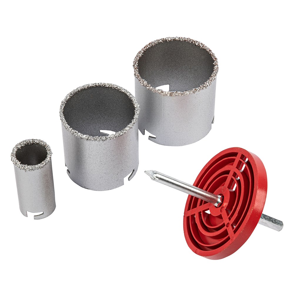 Рекомендуется использовать водяное охлаждение и работать в безударном режиме для предотвращения поломки коронок. Воспользуйтесь данным набором, чтобы сделать сверление легким и быстрым процессом.