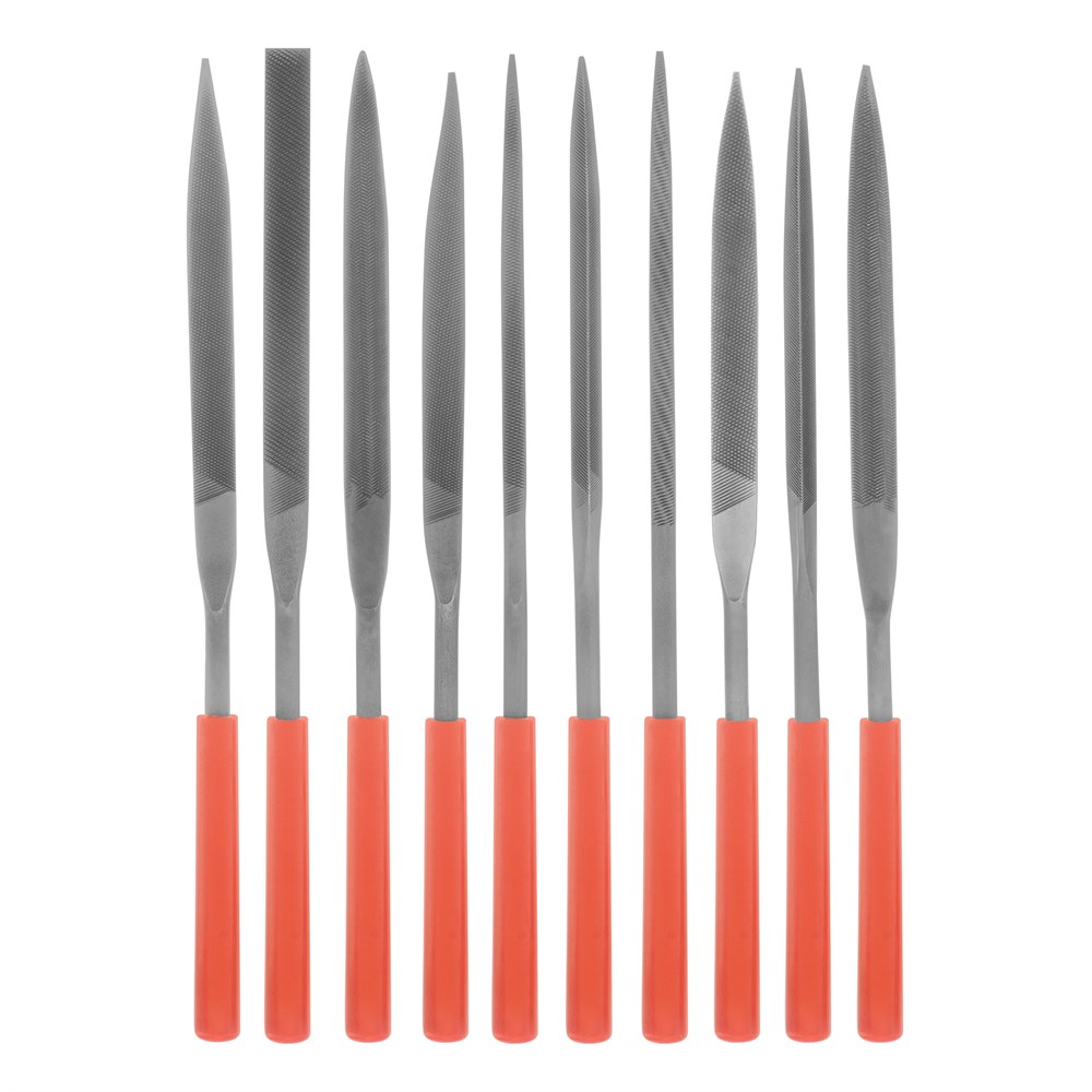 - Удобный поиск: Благодаря ярко-красному цвету рукояток, надфили легко найти даже в загруженном рабочем пространстве.
