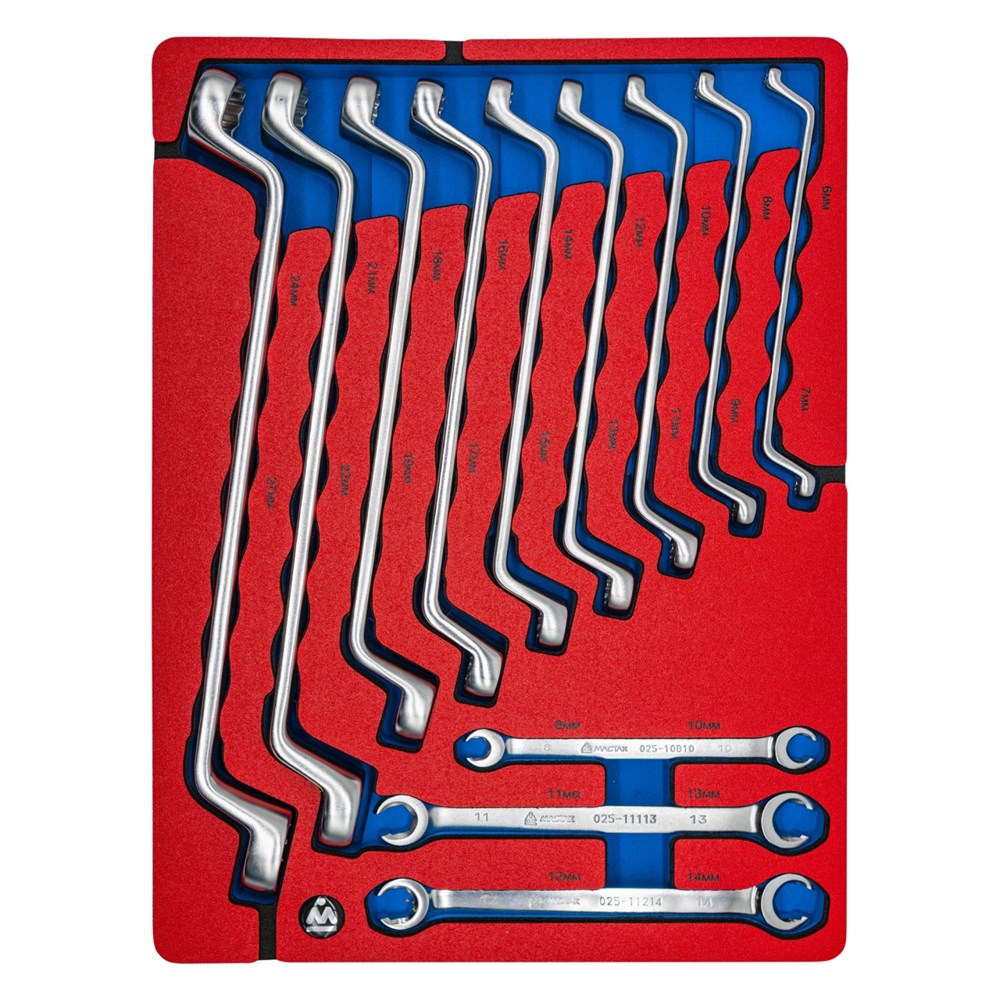 Набор накидных и разрезных ключей, зеркальная полировка, ложемент, 12 предметов МАСТАК 5-23112 5-23112