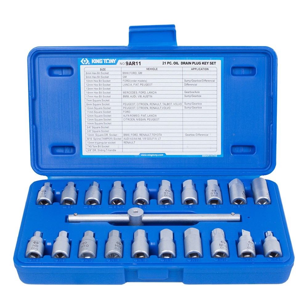 Набор насадок для сливных пробок на различных узлах автомобилей и другой техники.