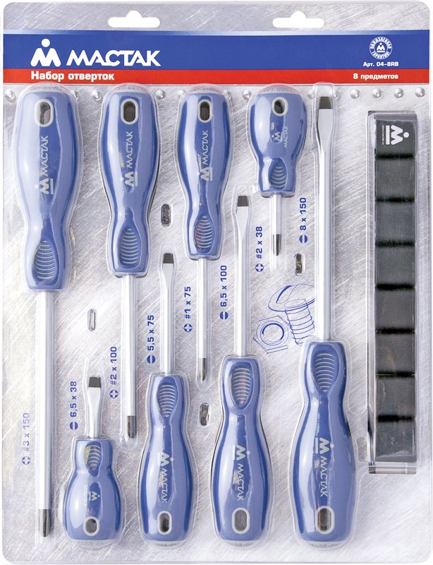 Набор отверток с держателем, 8 предметов МАСТАК 04-8RB 04-8RB
